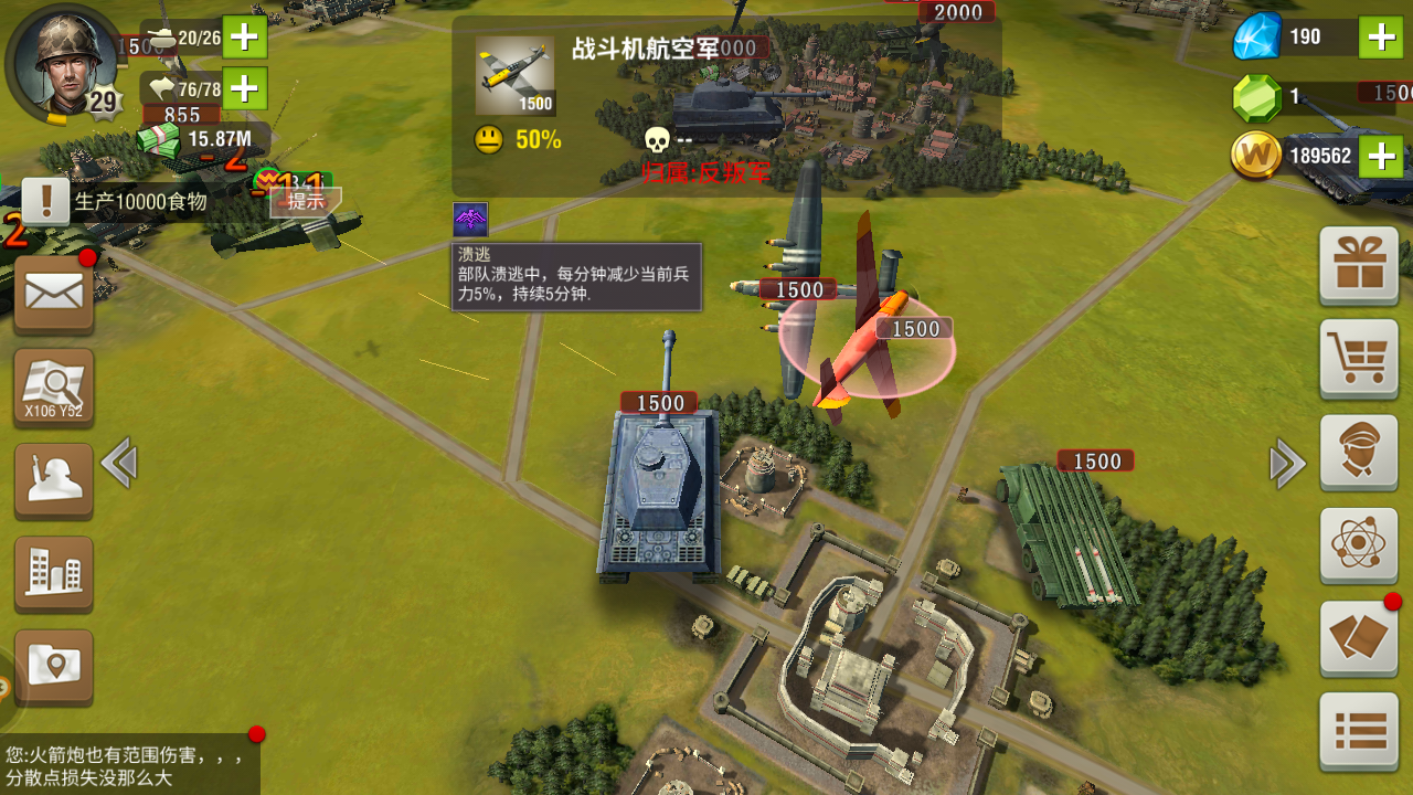 3.自动赶路能不能智能点,明明有一条自家领土的公路,偏偏抄近道走敌人的领土公路挨打,宁可花几分钟也不想我的兵挨打,别问我为什么不去占领了,在领导力有限的情况下,资源区和村庄我选择资源区。运输机轰炸机同理。
