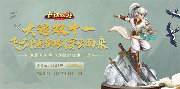 11月7日-11月14日期间,飞剑侠典藏手办、狐小妖迷你手办套装以及夜溪灵手办均以超值促销折扣价登陆天猫商城——网易游戏印象旗舰店,欢迎侠士们前往选购!
