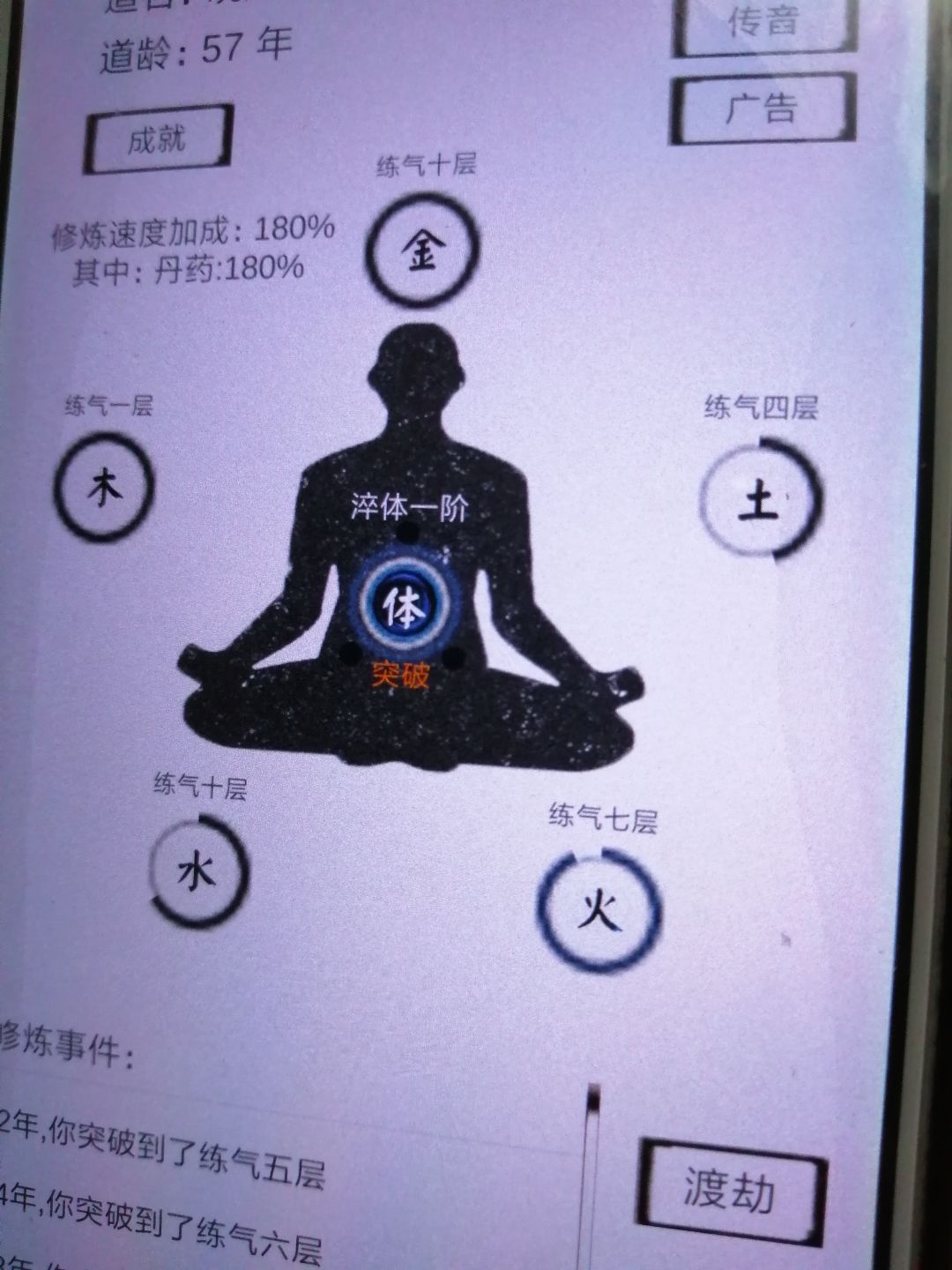 这个是未吃淬体丹的小号突破属性对比,可以看出,未吃1阶淬体丹的小号突破淬体1阶时只加了2点血量!