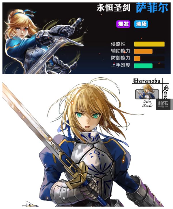 上为游戏中的莎菲尔,下为Saber