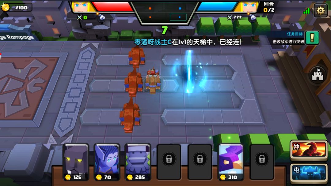 我们前面要用山岭巨人顶住,刚开始小编用一只山岭加奇美拉发现一只山岭抗不住伤害然后用两只山岭加一个满级弓手加两个一级弓手就能轻松过啦。