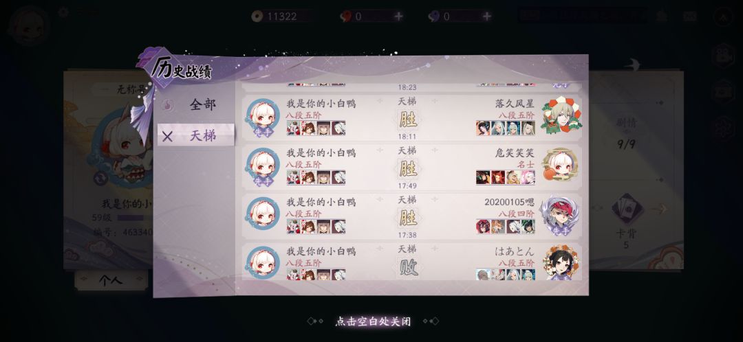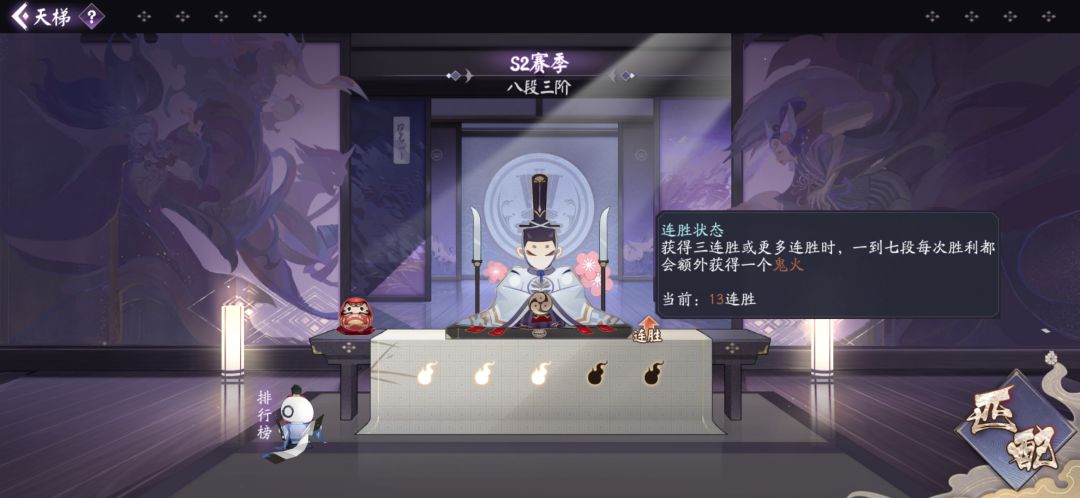 最开始的架构是判青鸩组合,这个组合最大程度上利用判官被动。之后尝试过清姬(配合青坊主打aoe)但是效果不佳,在看几遍录屏后发现瞬发机制的利用率太差,于是带上了真天也就是现在的卡组了。思路方面简单的说就是真天配合鸩打稳定的直伤,青坊主判官形成控制+输出最大限度上保证牌手存活。三勾后可选择清场也可以利用鸩觉醒来个超高血量直伤斩杀。