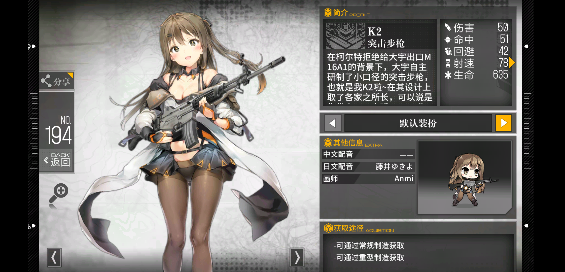 今天我们介绍的人形比较特殊,也是使用难度相对大一些的人形k2。首先来看看k2的属性了,
