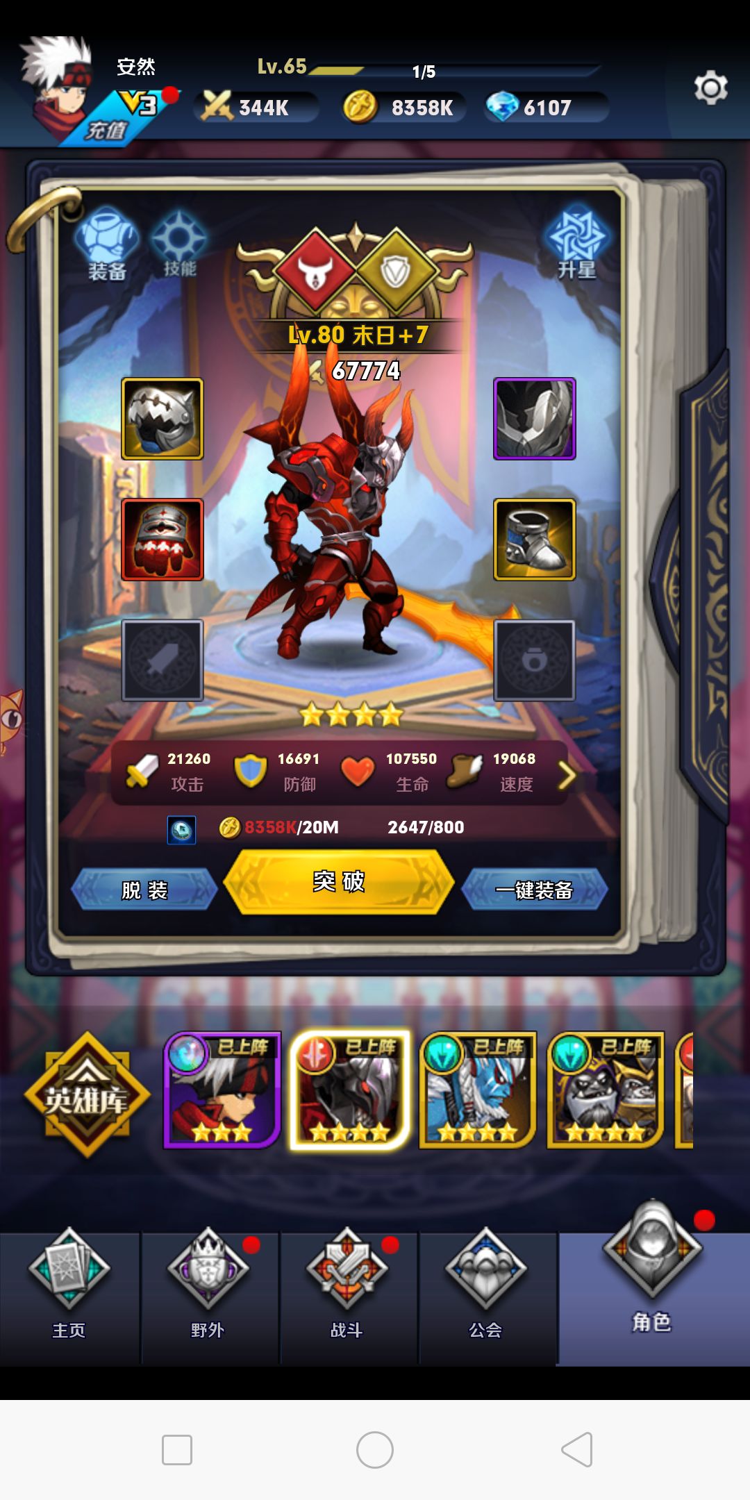 开局送的10连去抽 最好抽到末日 然后主培养末日(末日羁绊普通攻击溅射百分之50)然后去爬塔 爬塔会送两个末日这样你的末日就可以升到4星 送的绝望留着 当肉 爬塔打不过去了就去推图 继续培养末日 竞技场第一天去打到传奇50胜 这样能拿1万竞技币可以去买个狂怒专属 狂怒专属会让狂怒普通攻击改为群体攻击 钻石就用来买商店的金币跟经验 进阶石头 其他的都不买