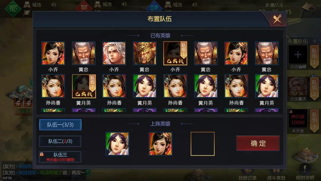 大家最多可编辑3组队伍参战,3组队伍会按照神兵值逐渐解锁开放。