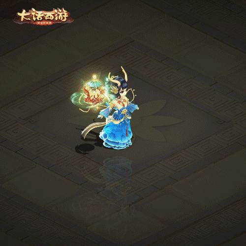 而镶嵌了13颗宝石的仙器则变得更加华丽,灯球本身不但有六角琉璃顶和火红珊瑚作为装饰,更围绕着黄绿相间的流光特效,绿色的蝴蝶翩翩飞起,充满了东海龙宫的感觉。