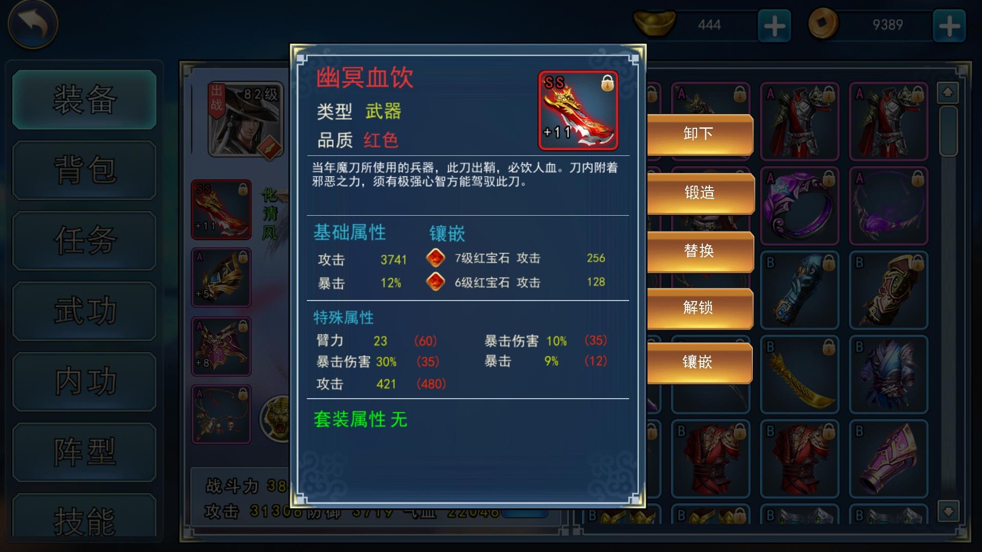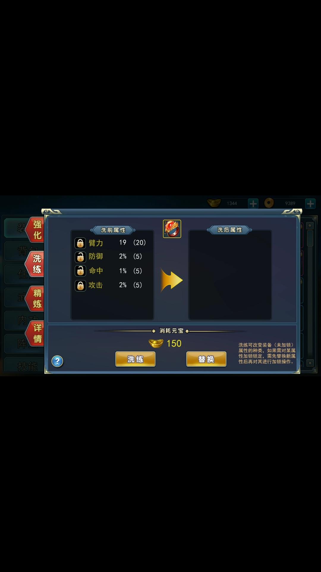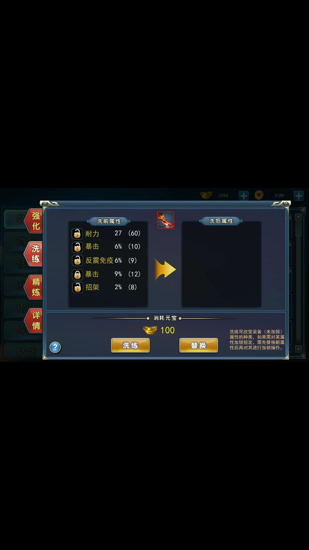 当然还是在先洗属性,后面的数值还没开始洗,这刀最后一个属性我没洗出来,估计要大亏了,先凑付用吧,这是没洗炼之前的刀和戒指。