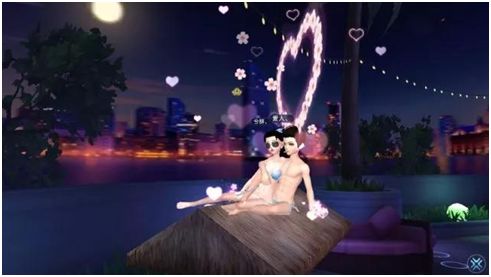 在温泉广场的草房子上面,搂着自己心爱的情缘一起看月亮,是不是感觉特别有面子呢?看图中的这对情侣,还开了自己的情缘戒指特效,恨不得让方圆几里内的玩家都知道他们在秀恩爱!而草房子只有一座,想去的玩家一定要提早“抢好”位置哦!