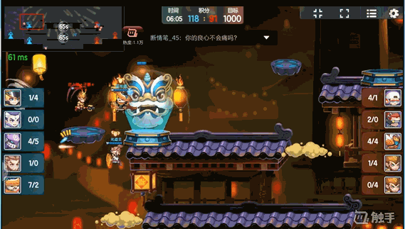 第一局,愚人码头战队双爆弹专家的阵容起到了很好的作用,一个在塔下单杀后顺利拿下一座塔,而之后另一个爆弹专家也不断找寻机会独自对敌方外塔进行攻击并拿下,此局比赛双方比分咬得非常紧,主碉堡也是被攻击掉差不多的血量。在 “轰炸敌方防御塔”的物资被光道战队拿到后我们以为光道战队可以顺利结束比赛,但没想到愚人码头战队的爆弹专家抓准时机一个人推掉了光道战队残血的主碉堡,最终取得胜利。第二局,光道战队依旧选择双猴子的阵容,而愚人码头战队选择熊猫对这样的阵容进行克制。开局光道战队拿下物资后双猴子迅速推掉了敌方上路一塔,而双猴子正准备乘胜追击推第二座塔的时候被愚人码头战队的熊猫找准机会双杀了,双猴俱亡。此后,双猴子一直无法抵挡熊猫的防守,而愚人码头战队的紫女和爆弹专家一直在推塔,最终取得胜利。