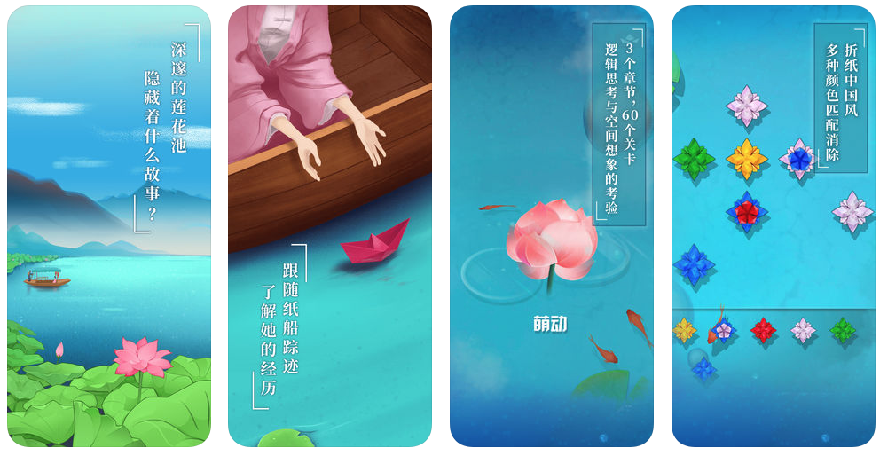 简介:《碧莲》是一款折纸中国风的益智解密游戏,主线玩法为匹配多重颜色进行消除。当你在解密通关的过程中,你会随机地看到有一艘纸船的踪迹,原来在深邃的莲花池中还隐藏着一段爱情故事的副线玩法,随着关卡推进也将层层解开...