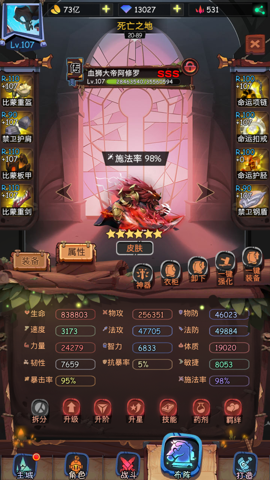 女皇神器开到了8级,男主带吸血寒冰,被动晕奶,猪血量倒数第二,圣光血量倒数第三,狮子血量倒数第一,主要思路是赌席勒的伤害波动,让狮子吃无敌,然后男主第一回合吸血第二回合女皇或者男主控住主位席勒一回合就能过,猪血量不够可以小队BUFF撑一下,我刷了30次莫名其妙过了。