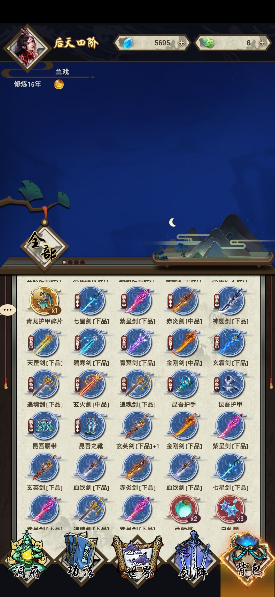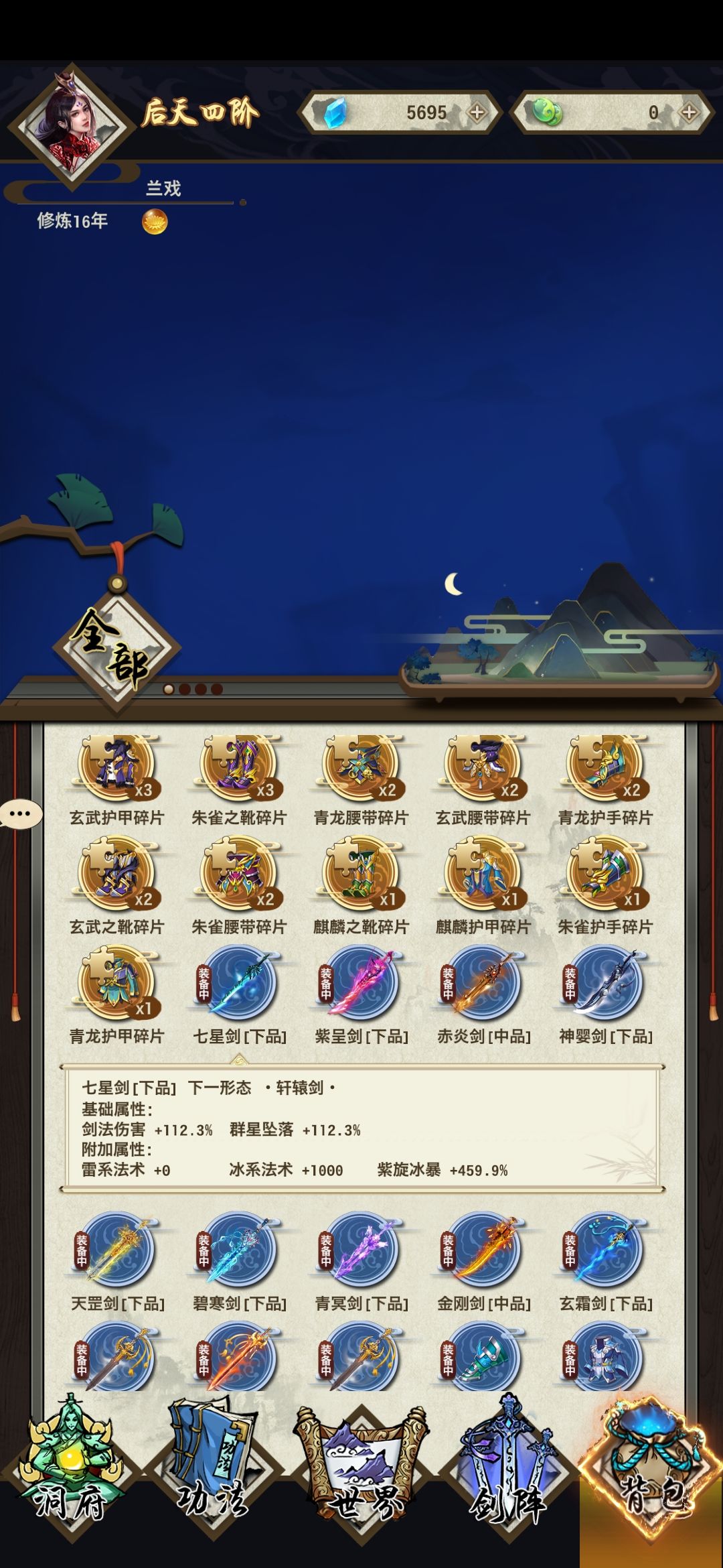 包里装备上的两把青冥剑不见了,有一把变成了七星剑,具体看鉴定,不可能弄出来两个一模一样的鉴定,图1显示装备了两把青冥,图34只有最新打到的一把青冥。