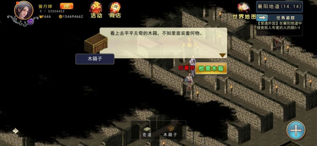 进入地道后,发现里面有吐蕃奸细,杀死这些小怪会掉落一级宝石,杀死敌军头领会掉落两个二级宝石,在地道中找到四个火药箱毁掉就可以完成任务了。你们摧毁敌人阴谋后继续调查城中内奸身份。