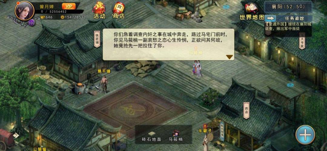 走到襄阳城铁铺上方,突然发现有一貌美女子和一小女孩,小女孩在哭。是不是欺负她了?于是便上去和她理论,却误会了她,原来小女孩的爷爷病重,牛鼻子说要七花虫草才能治好,玖妹也是好心帮她。于是和玖妹打赌,看谁先找到。要数谁对这方面知道的多,肯定非薛神医莫属了,于是前往沧州找薛神医打听。