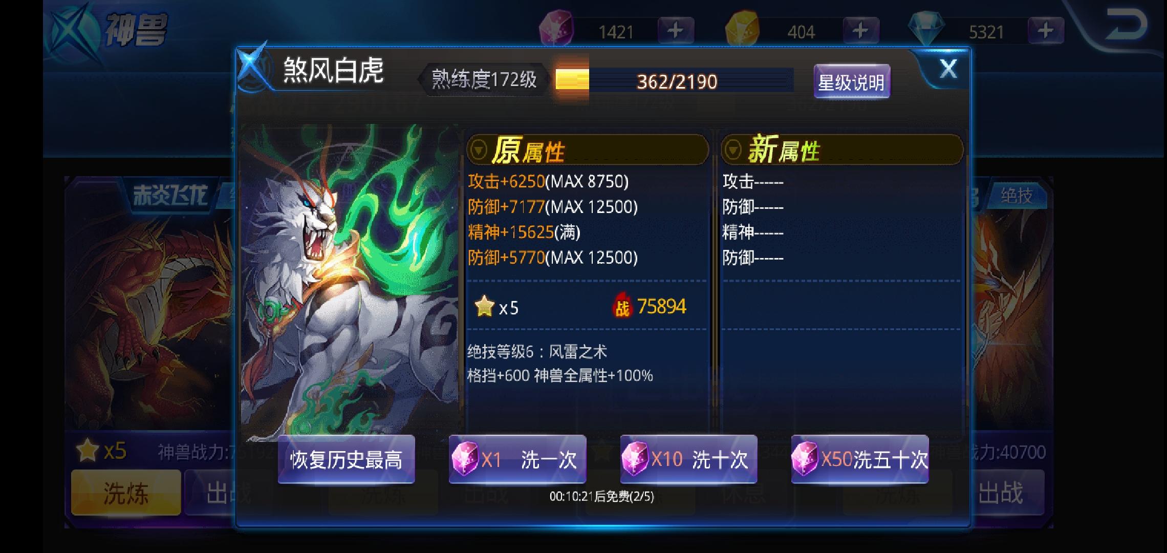 神兽系统应该是对平民玩家较为不公平的一个,因为五十连神兽升星概率较大(当然像我这种不欧不非的例外,主要还是看脸)五十连洗需要较高贵族才能开启,贵族豹子头礼包买买的例外😩。神兽洗练石获取途径也多例如周末的领主挑战(有些时候一些活动如海岛活动也会限时开启),月换……