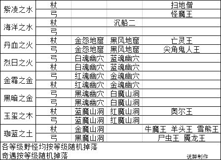 母虫掉落土弓,小怪极小概率掉落木杖。