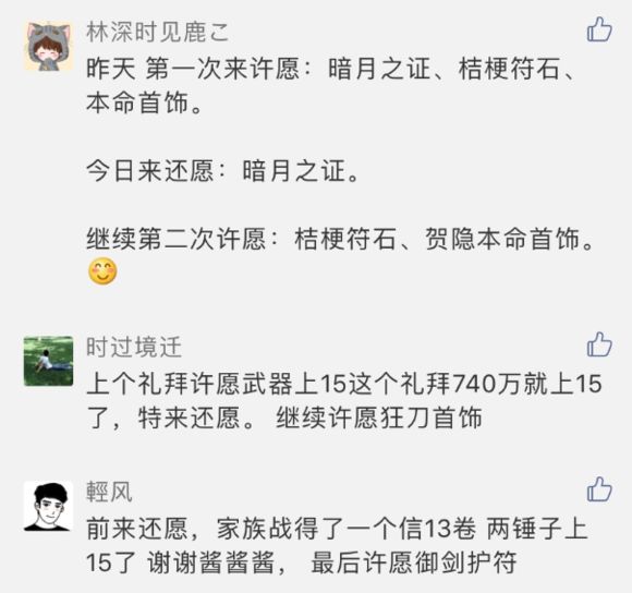 接下来我们一起看看上周期的还(xuan)愿(yao)墙呀