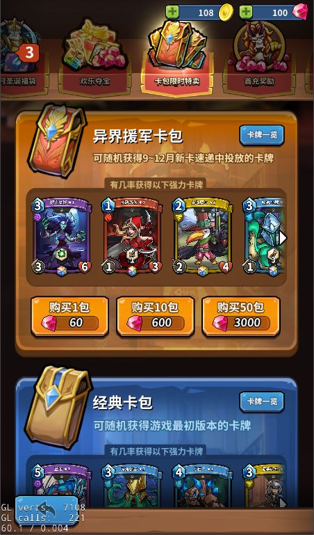 随着新卡片的增加,想要刚好抽中自己想要的那张卡变得越来越难了,针对这个现象,商店新推出了经典卡包和异界援军卡包,为牌士们抽卡提供更多选择性。经典卡包中含有游戏最初版本中的所有卡片,而异界援军包中则包含9~12月新卡速递中投放的所有新卡,牌士可以根据自己的需求进行更有针对性的选择,减少不必要的消耗哦~