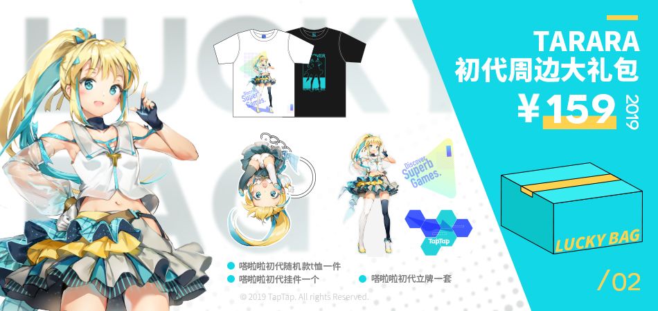 内含一件Tarara初代周边T恤(款式随机)+一套Tarara初代周边立牌+一个Tarara初代周边挂件