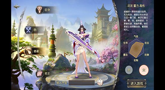玩家可以体验到多种多样的职业。你擅长近战攻守的话推荐巨剑职业,喜欢远攻放风筝那就逍遥职业。当然你想打爆发秒人流,唐门是你的不二选择,如果想求稳打持续的话,药王则十分适合你。每个职业配备八个技能,设有两套技能组,玩家可以自由来回切换。