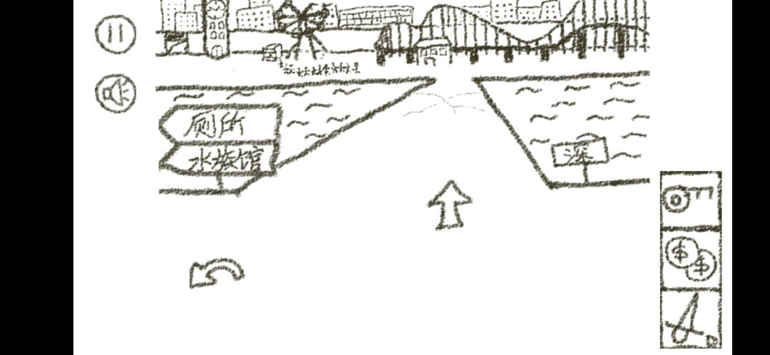 点击玩具刀,再点击坏蛋“小石头”的裤子口袋,获得<钥匙[隐藏道具,进入悲剧结局和完美结局的必需品]>,坏蛋“小石头”逃跑,向前走,下水