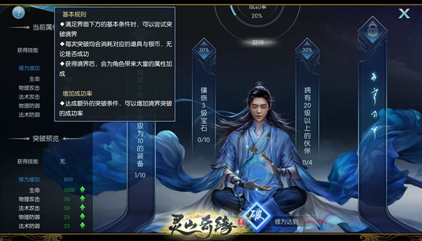 值得注意的是,境界系统还会提醒玩家突破至下一境界后,角色属性的变化情况。具体包括生命、物理攻击、法术攻击、物理防御、法术防御和精准,此外还可能解锁新的技能,全方位提升玩家的综合战斗力。