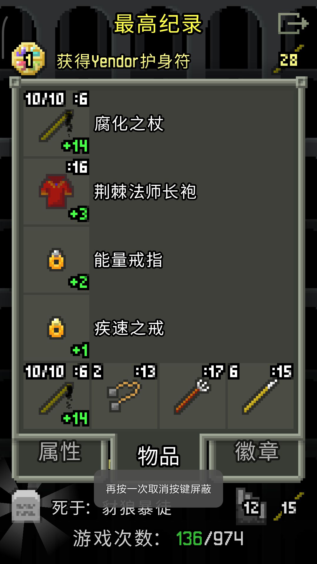 再就是充分利用打铁老头和制杖老头,护甲能让老头打就让老头打;自带的法杖我一般都是等到遇见制杖老头之后才融进新法杖的,因为会有升级加成,最高可以给升级到3级,再加上卷轴的15个升级,可以升到18级腐化杖,这样远程可以biubiu,近战的战斗力也很强。