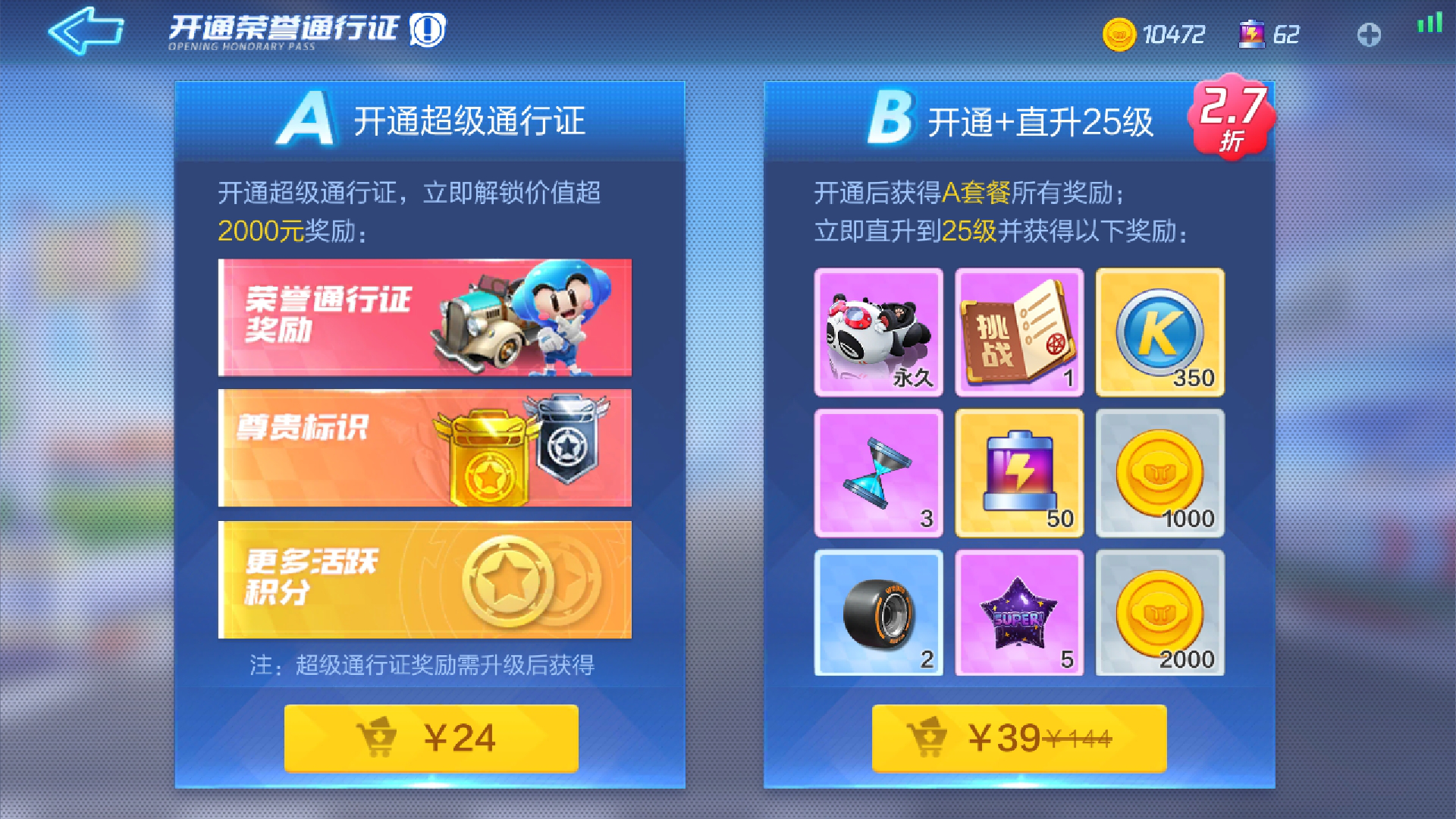 通行证共分为两种:活跃通行证和荣誉通行证,购买荣誉通行证后玩家可以获得更加海量的奖励,也是非常划算的。至于AB套餐的选择还是因人而异,但是AB套餐除了开通时的奖励不同外,其余通行证中的奖励依旧是保持一致的。