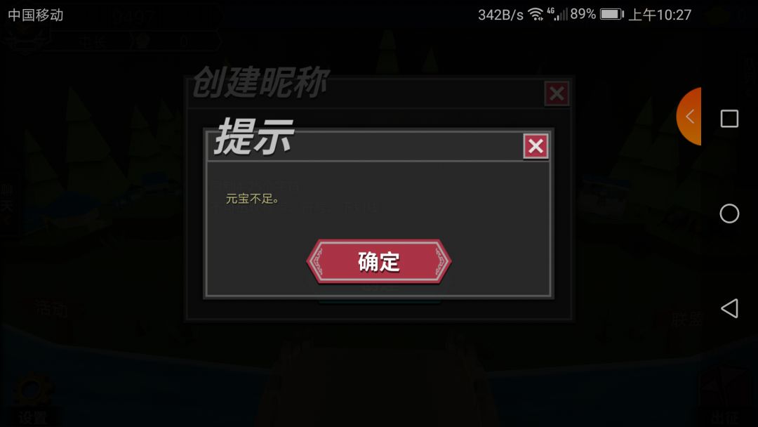 emmmm,取个名字告诉我元宝不足 。官方这要要求氪了么。