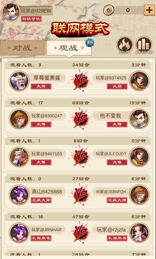 玩家可以根据自己的游戏时间来决定进入哪个赛场,当然小编选择了最基本的新手场,游戏还提供了观战功能,大大们玩累了还可以观看其他的高手们的精彩对决
