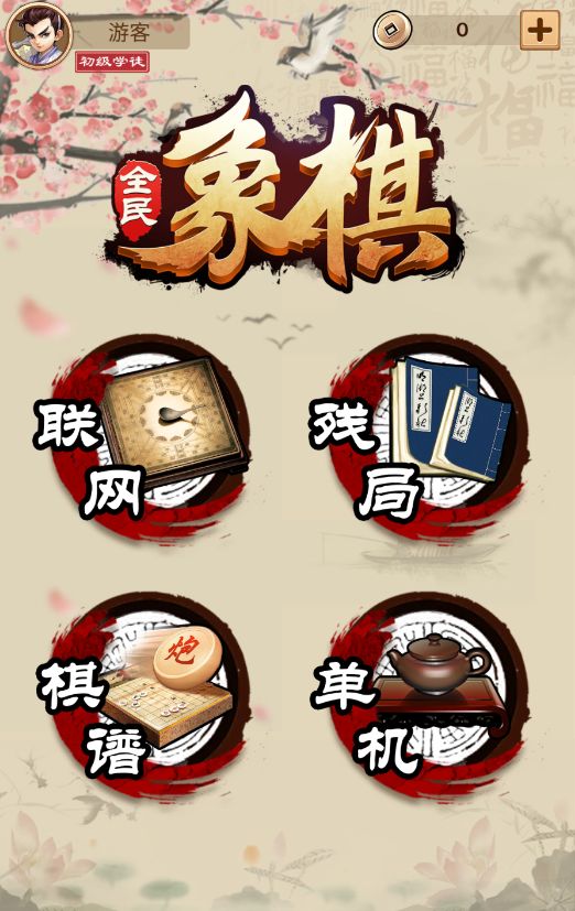 游戏目前分为四个大模块供大大们进行游戏,分别为:联网模式、残局模式、棋谱模式和单机模式。