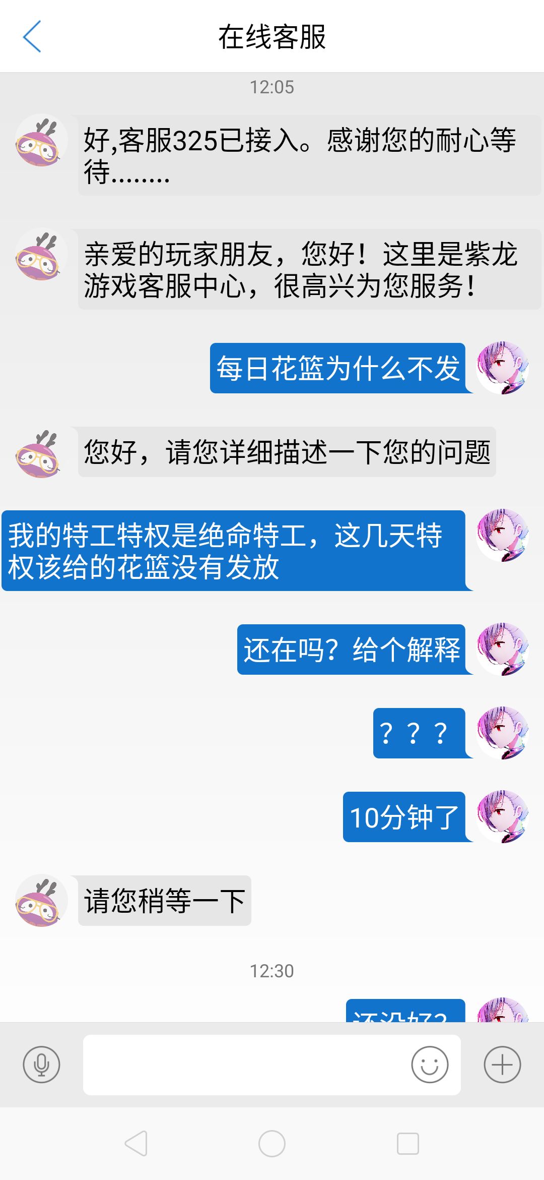 连续几天了,每日花篮直接不发放。问客服半天没有明确回应。给萌新的建议是最好别入坑,入坑一毛钱也别充。这游戏现在已经不值得砸钱了。