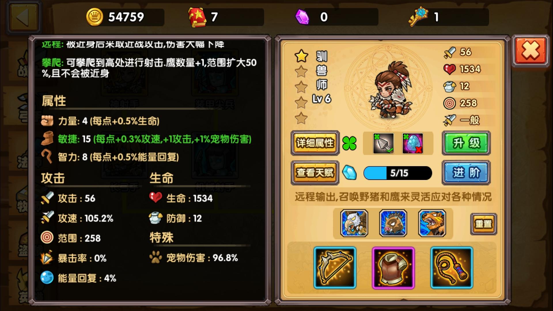 驯兽师属性一栏有个特殊属性,宠物伤害90%。