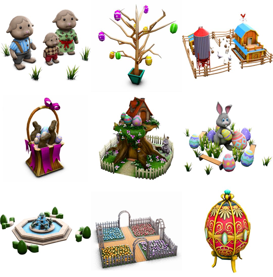 活动期间,复活节限定建筑将会上架商店礼包,其他卡包也都有机会抽出复活节的特色建筑哦!下面,就来看看都有哪些有趣的建筑和装饰吧~