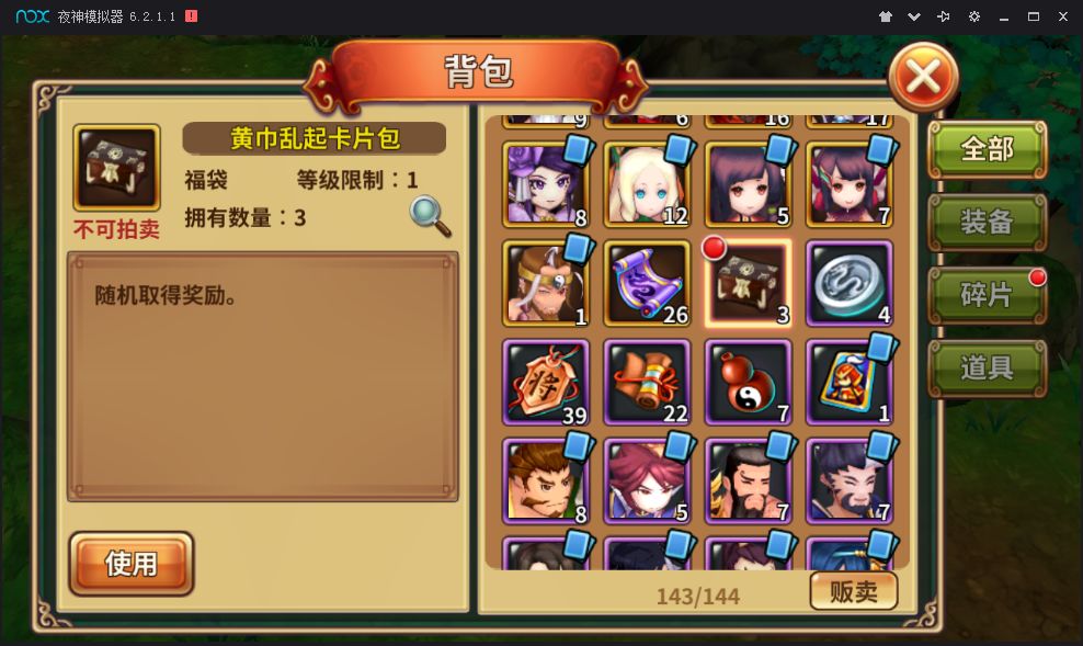 在活动和副本通关奖励中,都有几率会获得武将的卡片包。同时在商城中,也定期会有卡片包进行出售,在背包中可以找到已获得的卡片包的身影。