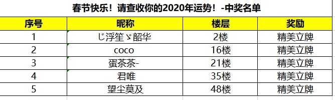 【获奖名单公布!】春节快乐!请查收你的2020年运势,得精美立牌!