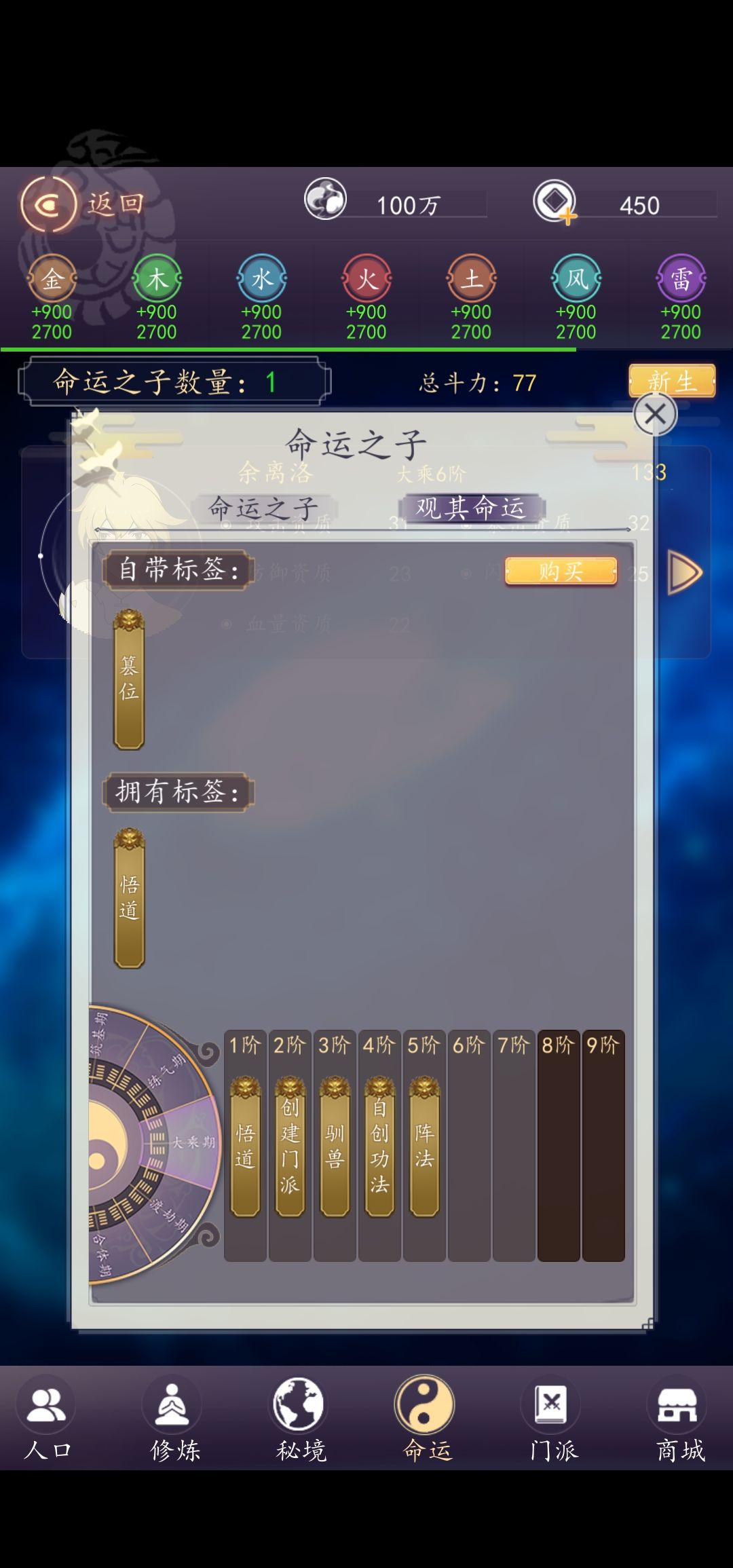 有觉醒!悟道!阵法!驯兽等等