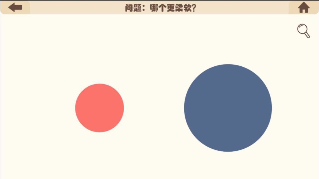 用两根手指像放大照片一样放大蓝球,蓝球放很大,红球没有变很大,选蓝球。