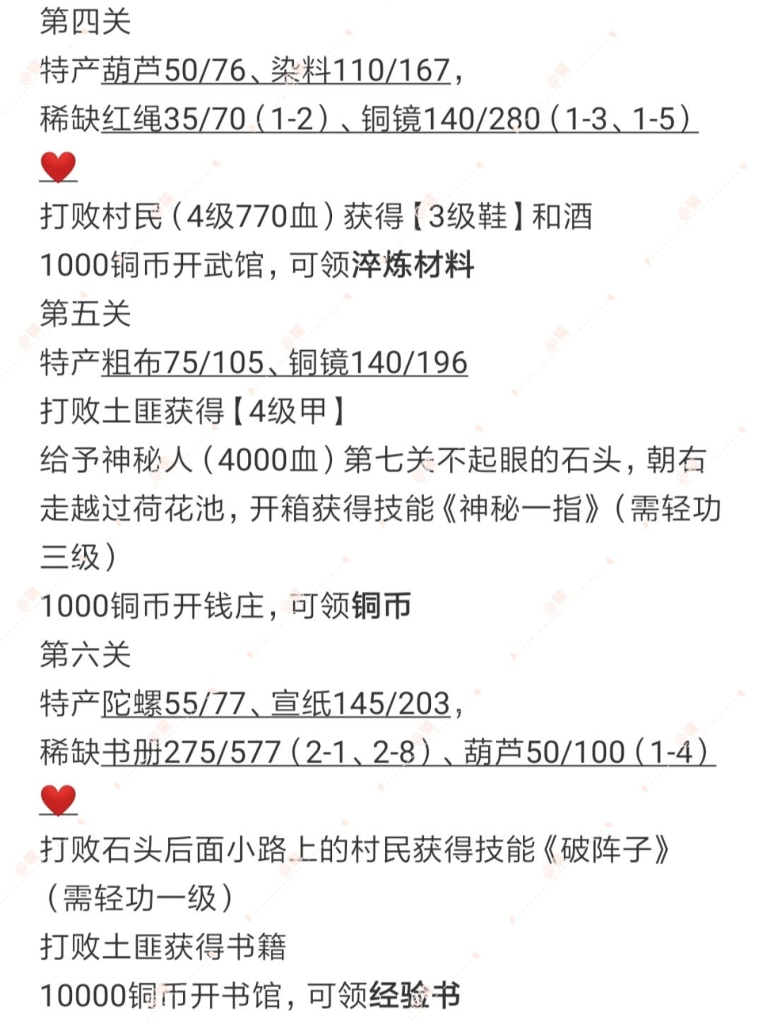 【玩家攻略】第一章特产、武学及装备攻略 ID:11250