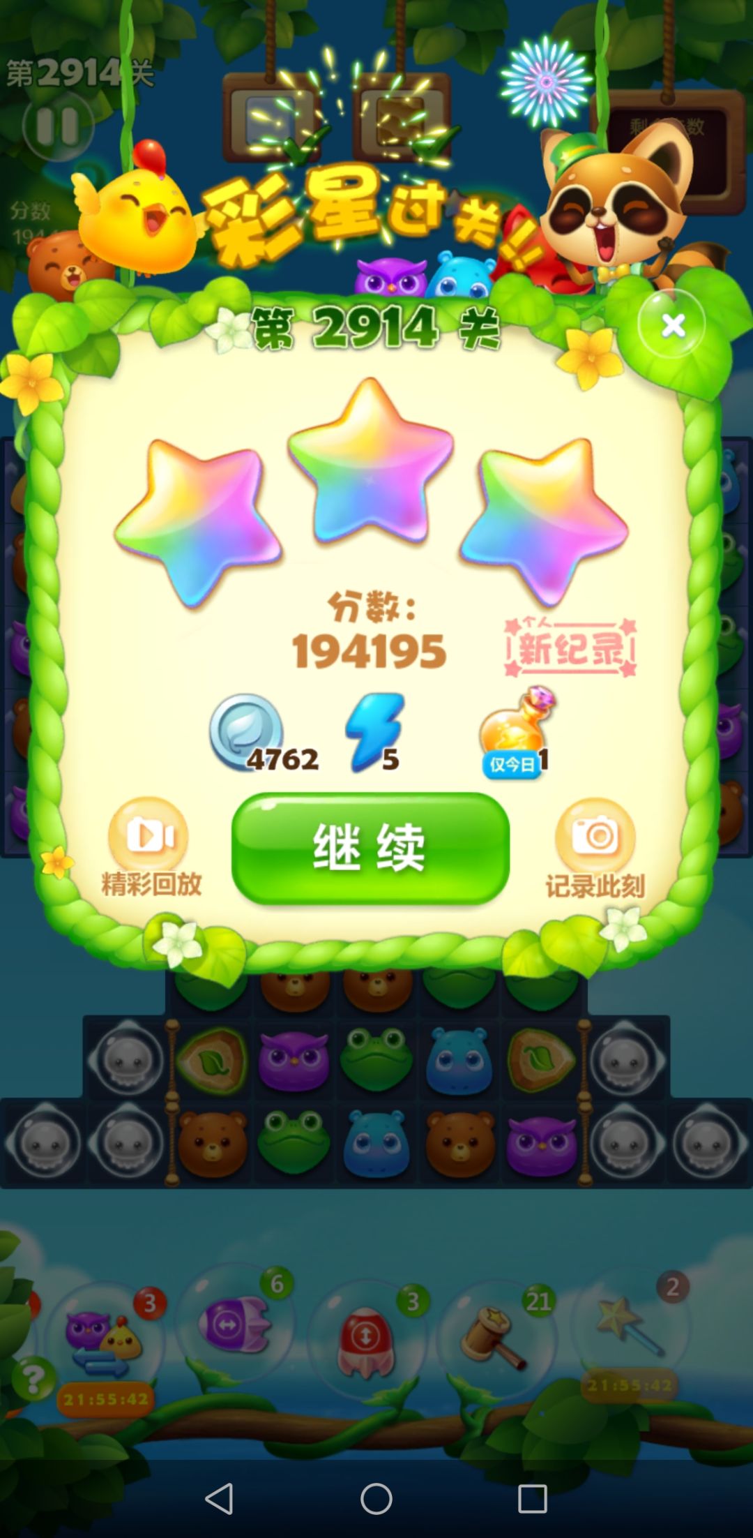 这关打了好久,用了一个魔法棒,分数容易上,步数紧张