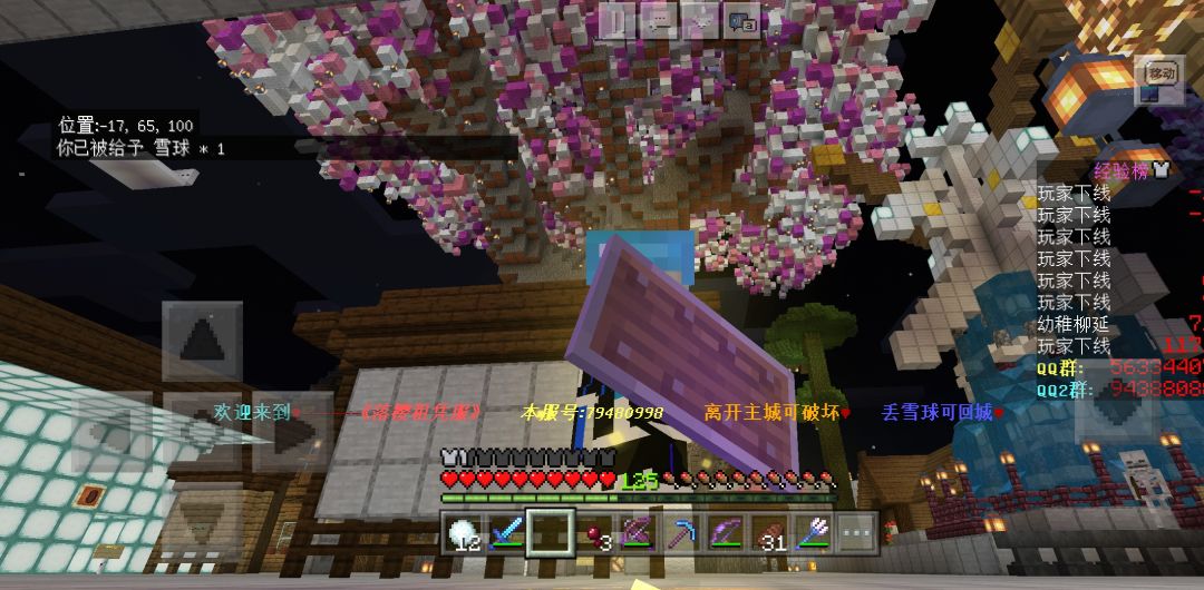 创了个服务器,还不错喔,就是小游戏什么的命令方块有点多,手机配置一般的有点卡,写下你的It,我一个一个加