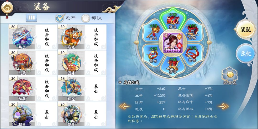 装备元神,大量引入中国传说中出现的人物,将传说中的神话人物呈现在玩家面前。装备元神拥有各类型不同的属性,在侠岚的养成培养过程中,装备元神是一大利器。熟知的共工、刑天、神荼、周公、九尾等将一一出现在你面前。