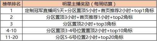 1)根据主播在专区开播日均人气排名给主播发放相应的奖励
