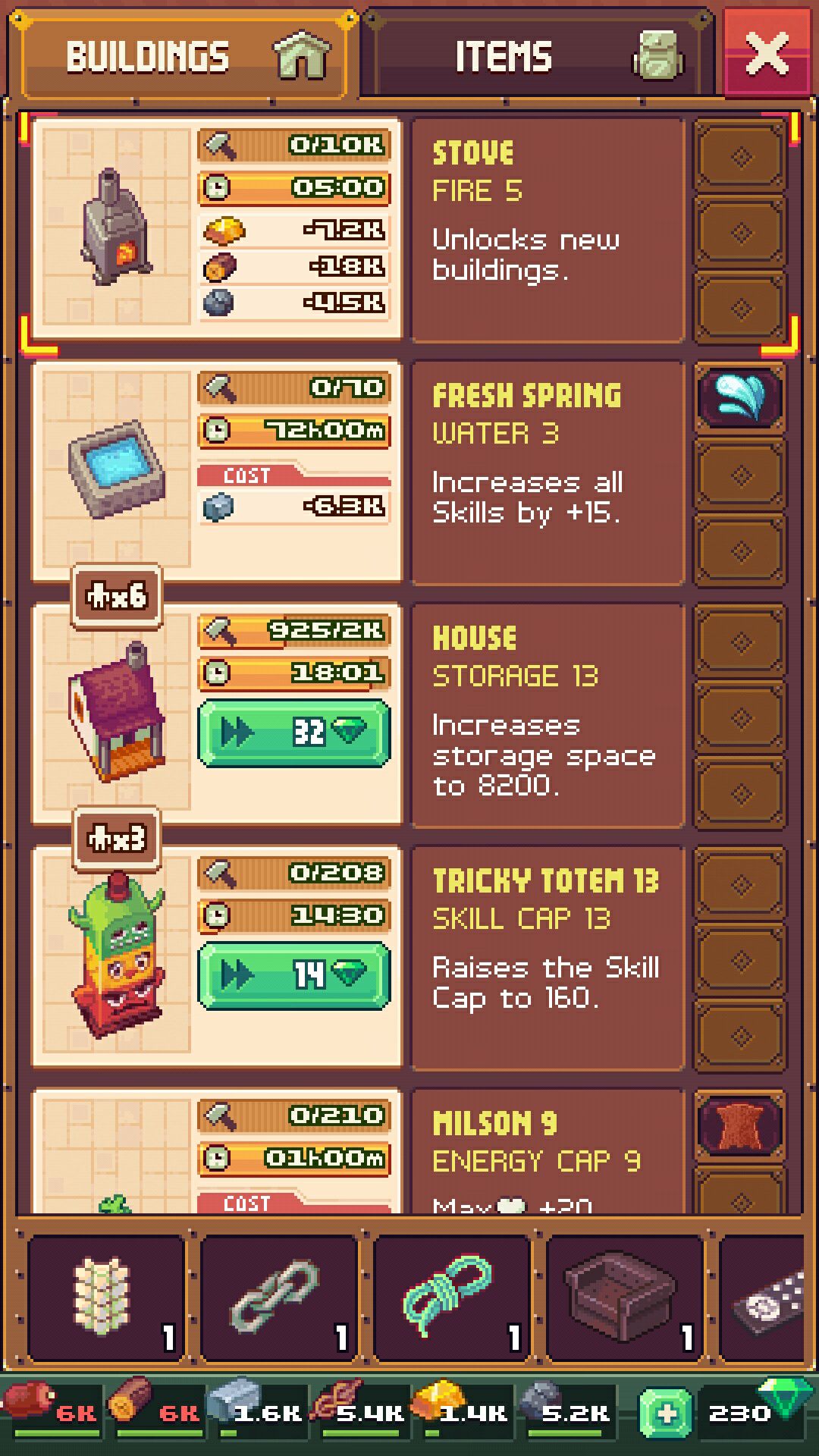 不管了,目前先升级房屋,提高仓库和个人能力值上限,有消息了我再来。