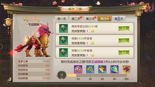 同时,各位上仙的每一次成长,都将会获得惊喜福利!限时达到一定等级、收集一定数量紫装、获得一定数量的宠物等,都将获得官方送出的特殊礼包,金币、元宝、宝石、强化石等道具分分钟拿到手软!限时完成成长之路还能获得终极奖励——橙色极品坐骑“圣域麒麟”!