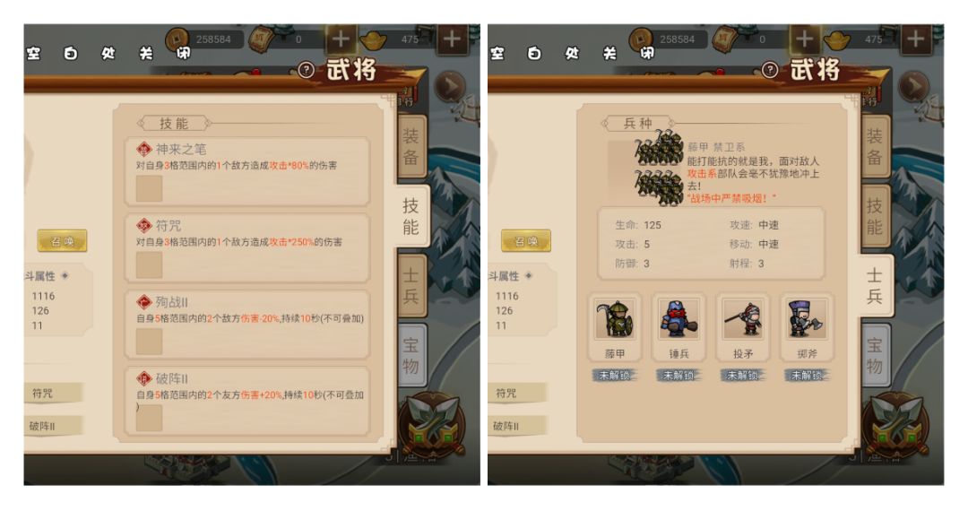 技能与兵种图表: