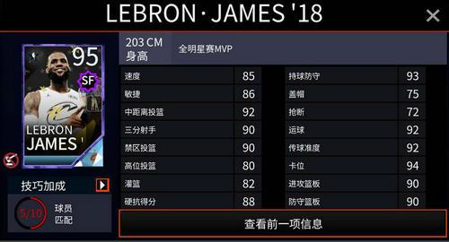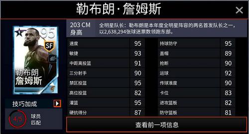 2、 活动期间,限时开启全——总评95分的全明星队长小前锋勒布朗·詹姆斯(可升级至总评100);