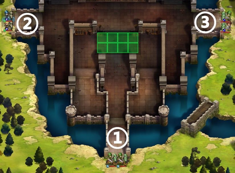 敌方会从图中3个位置进攻城堡。