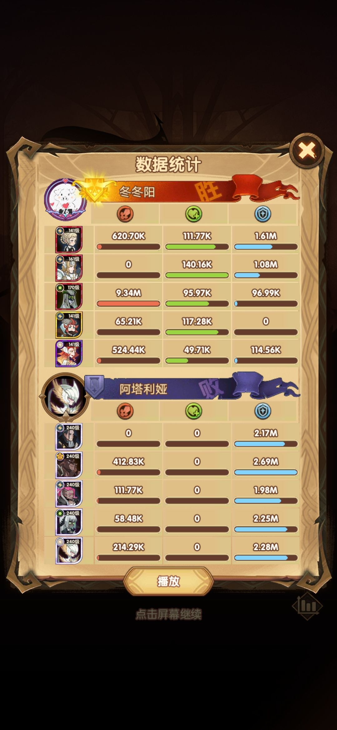 (紫装备都叫我吃了暂时没有史诗的了)除了这些都是史诗或者史诗+,属性一般优先拿爆伤然后攻击,耀光防御回能,其它回能的也可以拿,有开局加速的要拿上,我这把遇到好几次三个都是别的种族的还有什么开局和结束回血的不过影响不大,也是挺惨的如下图,还有几个实在没得选就选了个绿裔加速度