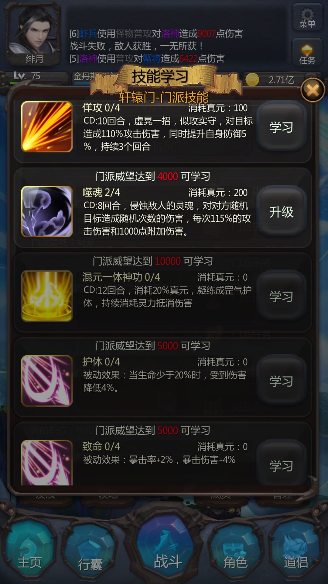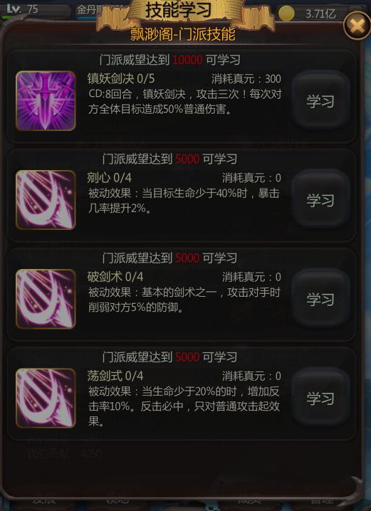 6、洞府学习某技能,注意左下角进度5/5;20/20之类的,就代表学习好了,结束闭关即可。不要再冒出个425/5被群里道友们笑话。